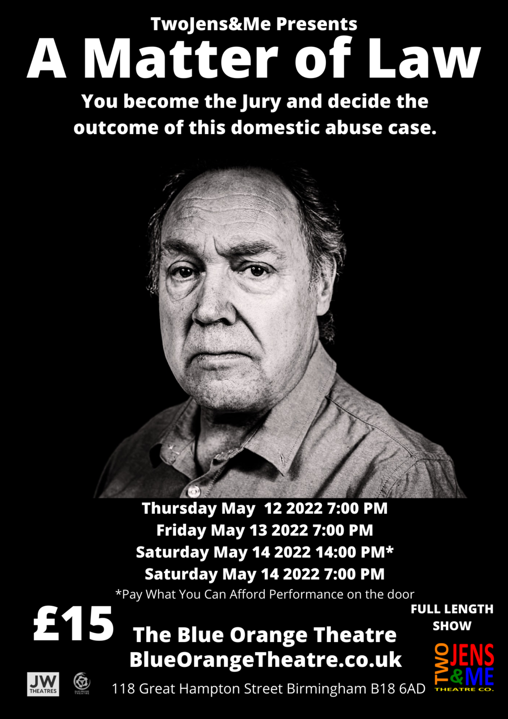 In 2022 we revisited ‘A Matter of Law’ outside of the festival window at the Blue Orange Theatre. Michael wrote a revised full-length version of A Matter of Law. Act 1 was the case for the prosecution and act two the case for the defence. It came to the Blue Orange Theatre stage in May 2022.
